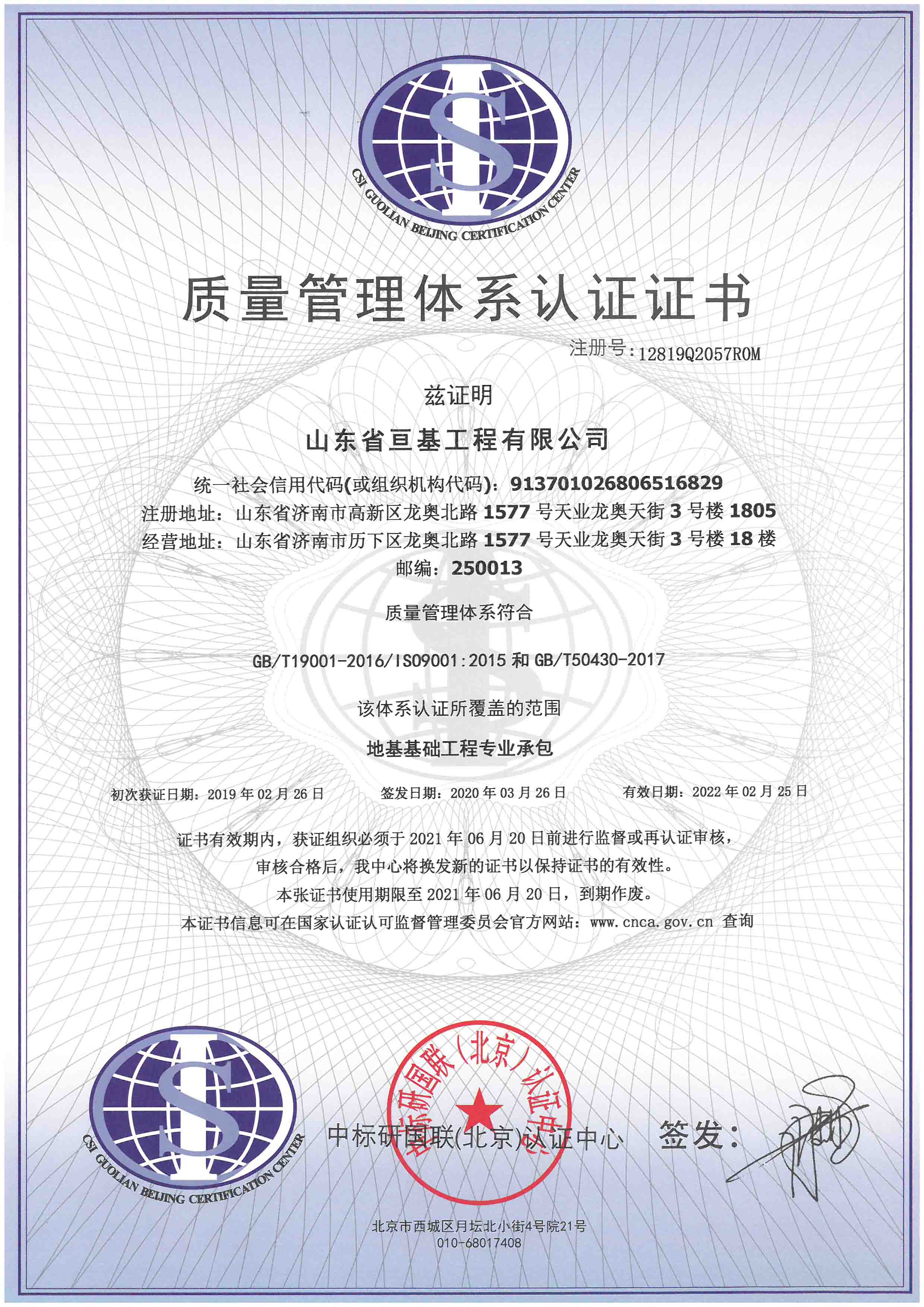 質(zhì)量管理體系認(rèn)證證書(shū)